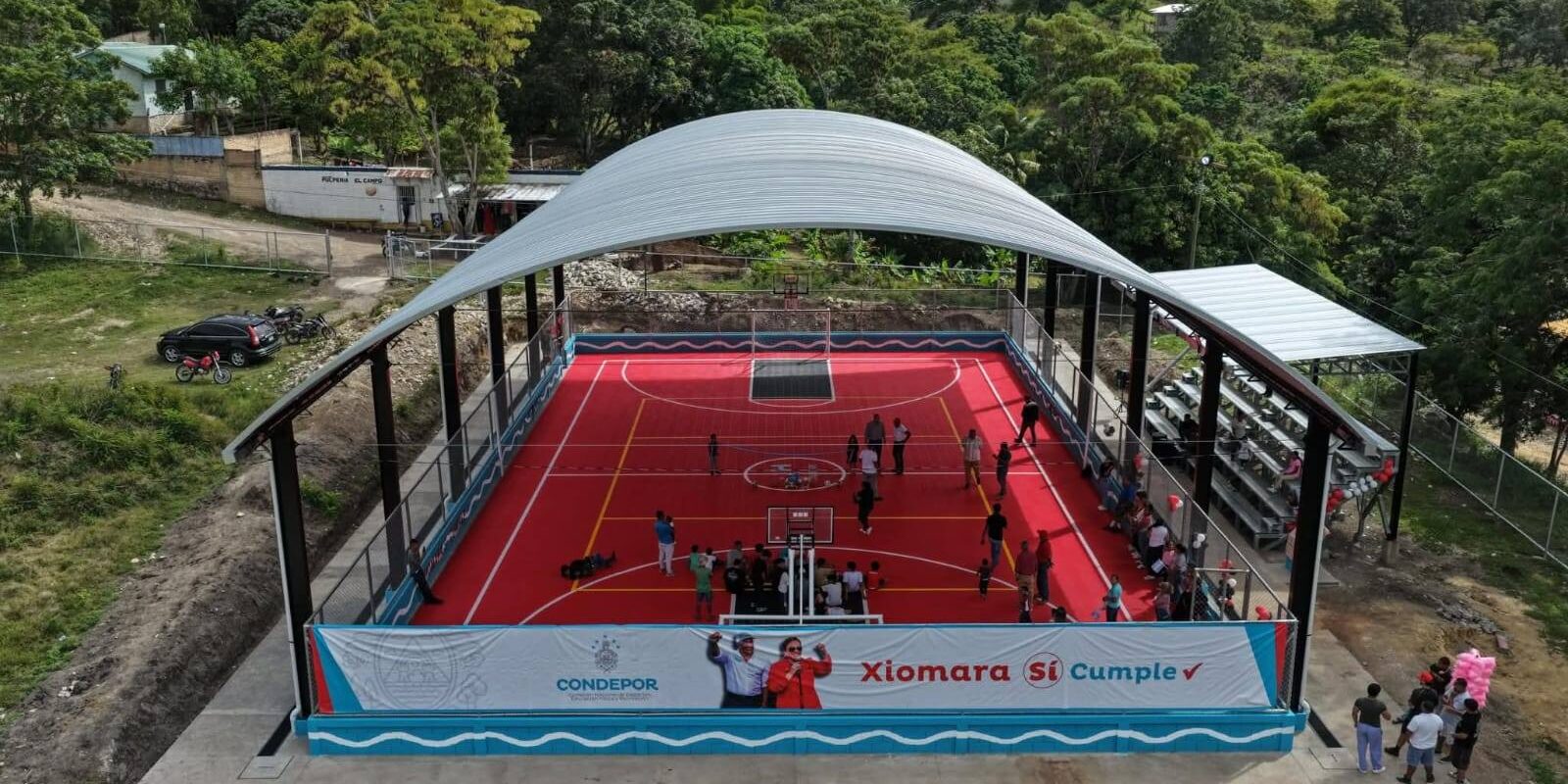El moderno campo de usos múltiples fue construido en el municipio de Cedros del departamento de Francisco Morazán (zona central) con el fin de fomentar el deporte, la recreación y la sana convivencia en áreas rurales.